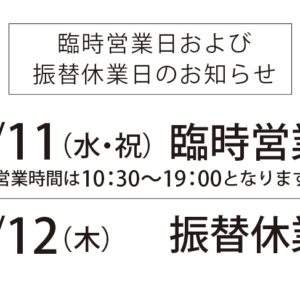 臨時営業と振替休業のご案内